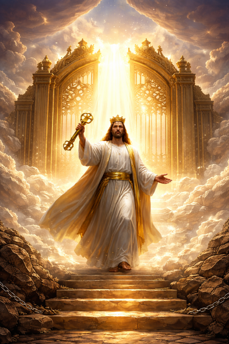 The Shepherd who guided us through the valley now holds authority over death and Hades itself. Imagine the moment: the doors of Hell tremble. The chains of darkness shatter. The light of Heaven cracks through the foundations of despair. Every soul trapped in the shadow is reached by the Shepherd’s hand.
